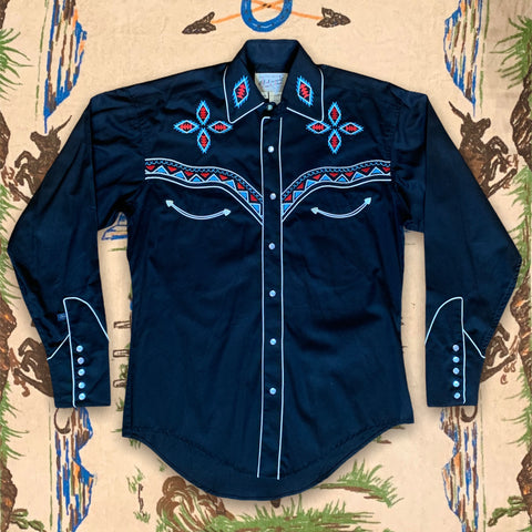Vintage 70s H Bar C California Ranchwear - Black with Arrowhead - Western Shirt (S)