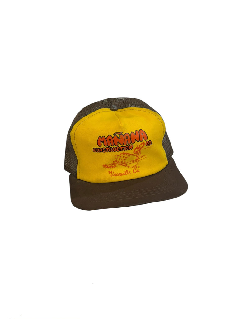 Vintage Brown Yellow Manana Construction Trucker Hat