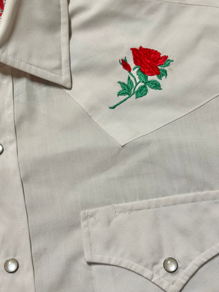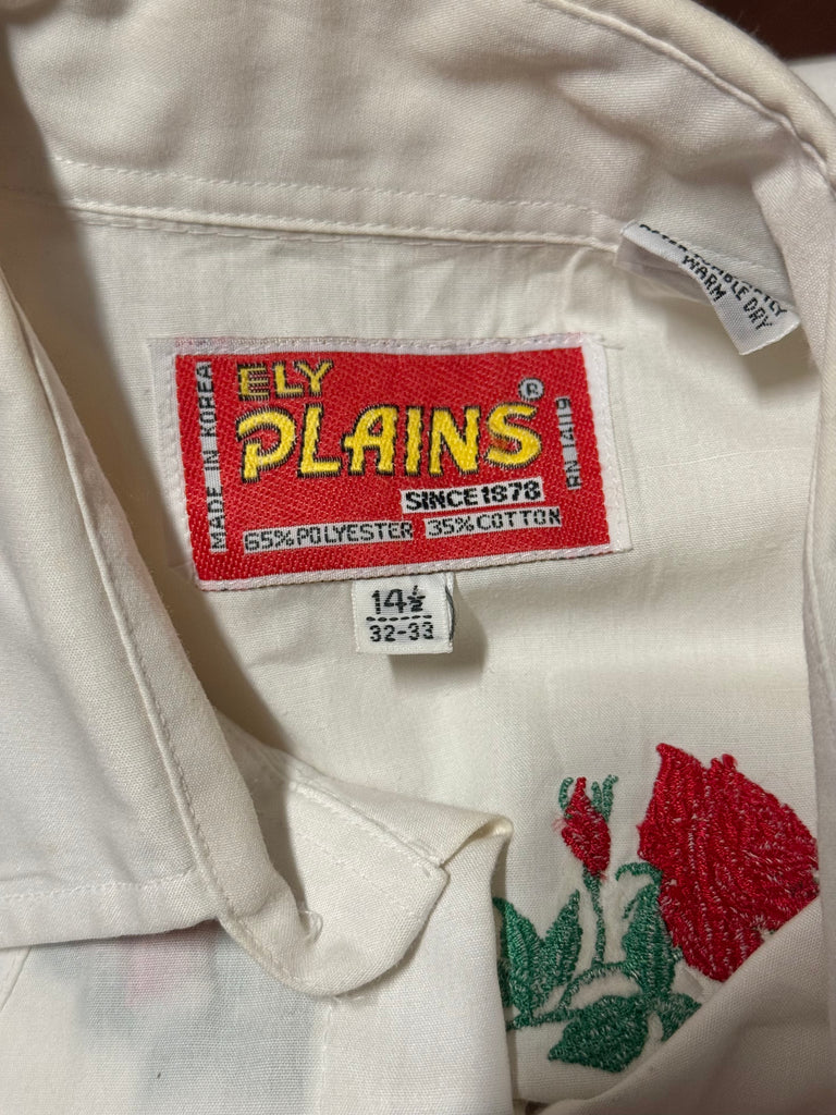Vintage ‘Ely Plains’ White with Roses Western Shirt (S/M)