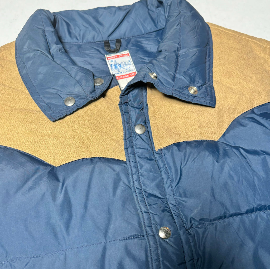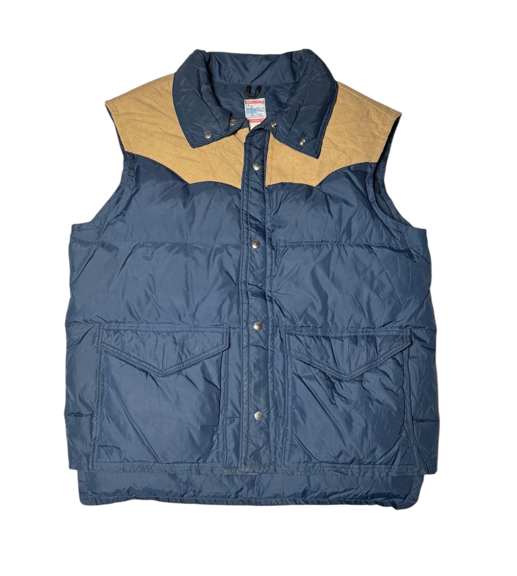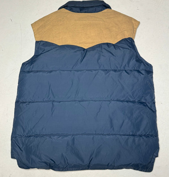 Vintage Navy Blue and Light Brown Puffer Vest (S/M)