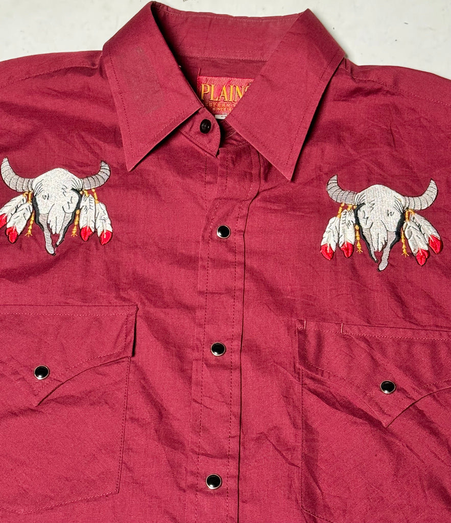 Vintage ‘Plains’ Burgundy with Longhorns Western Shirt (M)
